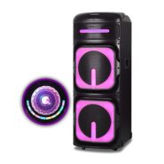 اسپیکر آیوا مدل AW-X2124DSP PRO آیوا با دارا بودن 4 ساب 12 اینچی , 2 عدد میدرنج 4 ، 2 تیوتر 1 اینچی میتواند صدایی قوی و با کیفیت به ارمغان آورد. دارای پورتها و راههای ارتباطی USB ،Bluetooth ،AUX ، صفحه نمایشگر LED ، دو ورودی میکروفون، ورودی گیتار و رادیو FM است. این اسپیکر همراه با یک میکروفون بی سیم عرضه میشود که میتوانید با آن به ضبط صدا و فعالیت جذاب و سرگرمکننده کارائوکه بپردازید. کارائوکه قابلیتی است که شما میتوانید برای سرگرمی یا تمرین خوانندگی، صدای خواننده را از پسزمینه آهنگ در حال پخش پاک کرده و خودتان به خواندن و ضبط آن بپردازید.